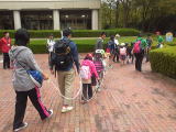 台風の影響か、昨日までの爽やかな秋晴れとうってかわってどんよりとした、そして肌寒さを感じる天気になりました。しかしその中で「いってきま〜す!!」とかわいく元気な声がセンターの玄関に響きました。今日は「にこにこキッズ!!体験塾」の一日目です。年長児と小学一年生が今日から一泊二日で交流を深めます。その最初のプログラムが「にこにこハイキング」です。仲良く並んで樹芸の森を目指します。ちょっと長い距離ですが、みんな最後までがんばれがんばれ!!(とんちゃん)
