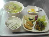 今週は寒さが厳しくなってきましたね。ふと窓の外を見ると・・・みぞれが降っていました。どおりで寒いはずですね〜。こんな日は温かい食べ物を食べて、体の中から温かくなりたいものです。今日のセンターの食堂のお昼ご飯が、偶然にも汁物です。ちゃんぽんに揚げ餃子・・・と中華の献立でした。研修や宿泊に来られてる方も、「フーフー」言いながら美味しそうに食べていました。これから、もっと寒さも本格的になりますが、少しの運動と野菜たっぷりの食事に心がけたいと思います。(run☆)