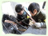 今日は、雪が降りそうなたいへん寒い日です。そんな中、第3回にこにこキッズ!体験塾が始まりました。まず、野外調理でカレーを作りました。寒い中、自分たちで薪を割り、米を洗い、野菜を切るなど、みんなが助け合いながら頑張りました。6〜7歳児が作ったとは思えない美味しいカレーができあがりました。夜は、テントを張ってその中で寝ます。(屋内です)明日は早朝から米の山登山です。ゆっくり休んでね。(Oちゃん)