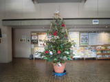 2012/12/11(火)曇り時々晴れ 毎日寒い日が続いています。さて、もうすぐ12月25日となりクリスマスを向かえます。現在、センターのロビーには写真のような立派なモミの木のクリスマスツリーが設置されています。クリスマスまでの限定展示ですので、よろしければ一度見学に来てください。(招き猫)