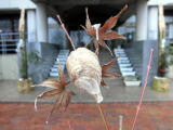 寒さがきびしくなってきましたね。センターのもみじの枝で、オオカマキリのたまごを発見しました。最近、街中ではあまり見かけなくなりました。たまごも冬の寒さにたえているのでしょうか?(イノッチ)