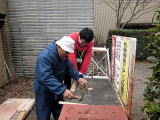今朝は少し冷えましたね。2月も終わりに近づき梅の花も咲き、春の訪れを感じます。ところでセンターに百葉箱があるのはご存じでしょうか。開所時に設置されたようで、かなり傷みがひどくなっていました。今回は全面的に新しくするために、昨日から「若杉の会」のボランティアの方と協力して製作してもらっています。大工仕事ベテランのボランティアも悪戦苦闘しているようです。早く真っ白な百葉箱を見てみたいですね。(ろい)