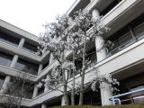 写真はセンター敷地内に咲いているコブシの花です。コブシは早春に他の花に先がけて咲く花だそうで、植物は季節の移り変わりに敏感に反応しています。今日は風が強くて少し散ってしまいましたが、まだ満開です。(招き猫)