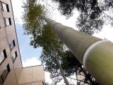 今朝はものすごい雨でしたね。通勤通学の方は雨に濡れて大変だったと思います。4月も3週目に入り、本日は中学校1年生の団体を中心に研修が行われています。大きな掛け声が館内に響いています。さて、いつもセンター日記の定番の場所は中庭ですね。今年もたくさんの筍が生えてきましたが、おいしくいただきました。1本だけ記念に残していたものはこんなに成長しました。(ろい)