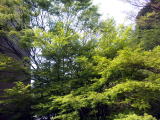 4月5日の「せんた〜にっき」に掲載しました山もみじは、柔らかな葉の間からかわいらしい竹とんぼのような形の赤い実(種)を付けていましたが、もうもみじの種はすっかり姿を消していました。赤い種は風に乗り、遠くへ飛んでいったのでしょうか? 今日は、あの頃より少し緑が濃くなった葉が風にそよいでいました。この新緑も日に日に色を濃くして季節を感じさせてくれるでしょうね。(夕焼け)