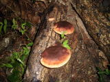 昼から晴れるとのことですが、昨日からの雨が、現在まだ降り続けております。私事ですが、本日スケジュールが立て込んでおりまして、朝からドタバタしているところへ、「今日は、センター日記当番ですよ!」とのこと。忙しい中にも、「時間に追われてはいけない、ここは落ち着いて…」と深呼吸。先ほど、所の周りを見て回ってネタ探し。憂鬱になりがちな天気にもかかわらず、所内の植物は生き生きとしておりました。恵みの雨です。と、足を山の中に踏み入れていくと、見つけました!しいたけです!朽ち果てた「ほだ木」からしっかりとしたしいたけが出ていました。「これは一体だれが?、いつ…?」と、センターの歴史をひもといていくと…、2008年に栽培されていたものと判明!5年もの歳月の間、脈々と菌が生き続け、こうやって立派なしいたけとなっていたのです。このしいたけのような、しっかりと根を張った人間になりたいものだと思いつつ、所内を走り回る一日になりそうです。(ヒデ)