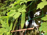 グリーンカーテンのゴーヤに最初の雌花が咲いて11日目です。写真の様に育ちました。収穫時期の見極めができないのですが、たぶんあと数日で収穫できると思います。この実以外にも実がついていますので、いくつ収穫できるか楽しみです。(招き猫)