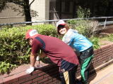 2013/8/27(火)晴れ 今日は、朝からさわやかな青空が広がっています。そんな中、2階レストラン横のテラスで、除草作業がおこなわれました。研修の皆様が食事をしながら眺めるところとあって、特に念入りにおこなっています。先日、雨が降ったこともあり、土も多少やわらかくなっていたようで、作業も順調に進みました。ただし、暑さはかなりのものがあるようです。皆様も外での作業は暑さ対策を忘れずにおこなってくださいね。(かんこう)