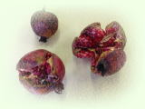この実、なんだか知っていますか?秋は実りの季節。様々な果物が熟し、店先にも並びますが、これはあまり見かけないのではないでしょうか?まあ、味もそんなに甘いわけでもなく、口に入れても種の方が大きく食べがいもないので、敬遠されるのかもしれません。年配の田舎に住んでいた方は小さい頃に何度か食べたことがあるのではないでしょうか?私はこの実を赤くなってきた頃(2ヶ月前ぐらい)から、「早く熟れて割れないかな〜」「久々食べてみたいな〜」と狙っていました。久々に5,6粒パクッ。あ〜なつかしい味。グミ(おかしじゃないよ)とこのザクロは私にとっては、昭和頃の子どもの思い出の味です。(しんべい)