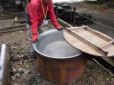 いよいよ明日、明後日は「ワクドキウインター楽習塾」を開催します。小学生を対象とした1泊2日の主催事業です。今回のテーマは「友情の火」。火おこし体験で自分たちの手でおこした火を、だご汁づくりの釜の火や紙パック灯籠のキャンドルの火、そして、ささぐりンピックの聖火の火に、全ての体験活動に自分たちでおこした「友情の火」をリレーして使います。写真はみんなでだご汁をつくる釜です。直径90pの大きな釜でつくるだご汁はきっと美味しいと思いますよ〜。(二本木)