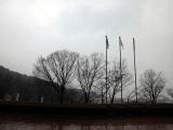 いよいよソチオリンピック開幕です(正確には、日本時間8日1時)。開会式前に始まった競技もありますが、みなさん、寝不足の方もいらっしゃるのではないでしょうか?写真は、センター玄関前の国旗掲揚台です。センターでは、左から県旗、国旗、センター旗の順で毎日掲揚しております。今回のオリンピックでも、この掲揚台のように日の丸が真ん中にはためくことを願いながら写真を撮りました。現在、外は冷たい雨が降っており強風が吹いています。「日の丸が綺麗にはためいた写真が撮れたら、日本人選手が金メダルとれる確率も高くなるかも…」と思いながら絶好のシャッターチャンスを狙っている間に、手がかじかんでしまいました。がんばれ、日本!はためけ、日の丸!(ヒデ)