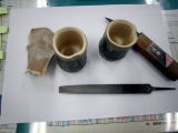昨日は、中国・四国・九州地区生涯教育実践研究交流会に向けての草刈り作業を紹介しましたが、交流会の準備も着々と進んでいます。これは竹を使った「ぐいのみ」です。切り口に口を付けても痛くないように小刀で淵を削り、ヤスリで形を整え、サンドペーパーで仕上げます。作業中は竹の香りがして気分は癒されますが、当日までに約50個を仕上げるため、手の方は疲れます。参加される方が気持ちよく使えるように「おもてなしの心」でせっせと作業を進めています。(とんちゃん)