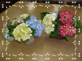 センターの職員の方が家の庭に咲いたあじさいを持ってきて下さいました。少し早いですが昨日の雨で花が開いたようです。ピンク、青、白、様々な色のあじさいを花瓶に生けて、センターに飾っています!とってもキレイです(^^)当センターにある、あじさい広場のあじさい達はもう一踏ん張りのようです。何色のあじさいが咲くのかな?とっても楽しみです(*^_^*) (じゃがりこ)