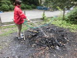 社会教育総合センターは、ご存知のとおり少年自然の家を併せ持つ研修施設です。利用団体は様々ですが、宿泊研修のご利用は、やはり学校からが多いようです。そうした学校からの利用で人気のある研修プログラムは野外炊飯です。野外で行う火起こしや調理は、便利が当たり前の生活になっている現状からすると、不便が多く、困難を極めます。しかし、困難だからこそ活動の中で多くのことが学べ、達成感を実感させることができることから、学校の研修プログラムで活用されているのでしょう。そして、そんな研修の様子を影ながら支えているのが、当センターの若手指導員達です。写真は活動後の炭火をひっそりと消火している様子です。楽しい活動の影には、そんな指導員の地道な作業があるということを頭の隅にでも置いていただくと幸いです。(ninjya)
