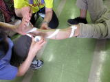 2014/06/17( 火)曇りのち雨 雨模様となりました。そんな中、「子どもの体験活動支援者等セミナー」が行われました。これは、子どもたちの体験活動を支援する指導者の資質・能力の向上を図るための研修会です。午後からの【実習・演習】をのぞいてきました。「ファーストエイドトレーニング」ということで、捻挫をした時のテーピングの仕方を特訓中でした。さまざまな体験活動中に、ケガ等無く過ごせるのが一番ではありますが、指導者がこのような応急処置の仕方を心得ておくというのは、大切なことですね。(ヒデ)