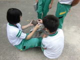 2014/9/4(木)雨時々曇り 今日は昨日と今日の2日間職場体験させていただいた篠栗中学校2年生4人で書かせていただきます。この二日間で、資料の整理や巡回などの仕事や、やきすぎやかめ吉君との触れ合いなど、たくさんの事を体験させていただきました。(tanigawa)僕はこの2日間を通して日頃できないことをたくさん体験できたのでしんせんでした。特にプラ板作りが楽しくみんな上手にできていましたw(*^_^*)(道根)このしせつの中庭には亀がいましたそして亀の子どもたちもいて木についている虫を食べていました(たか)この2日間でいい体験ができてよかったです!(泰志)2日間ありがとうございました.篠栗中学校2年