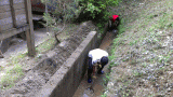 8月は雨天が続き、センター裏山の被害や裏山からの土砂があじさい広場に流れてきたりと大変でした。修復作業は少しずつ行っていたのですが、今日は全職員で修復作業を行いました。溜まった土砂を溝から上げて、土砂を土嚢袋に入れて、崩れた斜面を修復していきました。大変な作業でしたが、みんなで力を合わせて頑張りました。作業途中で出てきたミミズはカメ吉のお土産です。今日は大きなミミズをたくさんもらえて嬉しそうでした。(二本木)