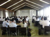 本日、センター主催事業「平成26年度信任社会教育職員等研修会A」が、予定通り実施されました。(写真は今日の様子です)前の「せんたーにっき」のように、昨日は台風による「荒天」が心配されましたね。しかし今日は、午前中は雨模様だったものの、研修会が始まる昼からは打って変って「好天」に恵まれました。会場の大研修室には爽やかな秋風がそよそよと入ってきます。でも、参加者の皆さんは違いました。私が見に行った時はグループ協議が行われていましたが、皆さん真剣なまなざしで意見交流をされていました。この熱気が雨雲を吹き飛ばしたのかもしれませんね。その前には筑紫野市生涯学習課の黒葛原 緑様による実践発表、古賀市生涯学習推進課の山田 恒夫様によるミニ講話があるなど、内容のこい研修会となりました。参加者の皆さんにおかれては、本日の研修が実りの秋にふさわしく、実り多い研修になっていることを願うとともに、多数参加いただいたことに厚く御礼申し上げます(とんちゃん)