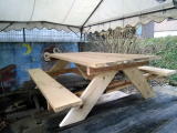 早いもので1月も今日で終わり、明日からは2月となります。しばらく暖かい日が続いていましたが、ここ数日は最低気温が0℃近くまで下がり、また寒さがもどってきました。寒暖を繰り返しながら徐々に春がやってくるのでしょうが、花粉症の私は暖かくなるのが嬉しい反面、少し憂鬱な気分になります。ところで昨年末、冬の嵐で、風が強い日に野外炊飯場のテントが巻き上げられ、そのはずみでテーブルの一つがひっくり返り、破損してしまいました。そこで、職員と指導員の皆さんが新しいテーブルを作成しました。冬場は宿泊研修される利用者の方が少なくなるので、その時間を利用して、この時期にしかできない補修や作業を行っています。(スイスポ)