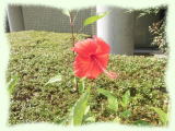 お盆最終日の今日、再び快晴となりました。山に囲まれ、木々が多い社会教育総合センターでは、今日もセミやツクツクボウシの大合唱が聞こえてきます。この暑さで、少しぐったりしていると、とびきり鮮やかな赤が目に飛び込んできました。南国の鮮やかな花、ハイビスカスです。赤いハイビスカスの花言葉は、「常に新しい美」「勇敢」です。暑い夏だからこその楽しみを見つけたいものですね。(yamakaze)