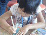 今日と明日は、当センターの主催事業「サンサンキッズ!サマーキャンプ」の2回目です。年長児と小学1・2年生が互いに交流を深めながら体験活動をし、集団生活のマナーやルールを身につけていきます。最初の活動は、クラフト活動で、オリジナル風鈴作りです。ビーズに糸を通したり、糸を結ぶのがむずかし〜い!!小さな指や手で、細い糸や小さなビーズと、首をかしげながら格闘しています。だけど、できたときの風鈴のかわいい涼しげな音色が聞きたい一心で、一生懸命作っています。まだまだ暑い日が続くけれど、この風鈴をおうちに持って帰って軒先につるして、風鈴が涼しげな音を奏でるたびに、サンサンキッズの楽しい思い出をふり返ってくれるといいな・・・と思います。(シンバの相棒)