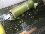 かめ吉&子亀報告隊の二本木です。久しぶりの亀ネタになります♪子亀たちも随分大きくなりまし。毎日室長たちのエサやりの賜物でしょう、一気に二回りほど成長したように感じます。そのため、今までのお家では3匹が狭そうにしていたので、大きな竹筒、いやお家に変えました。ゆったりしたスペースで気持ちよさそうにしてま〜す♪(二本木)