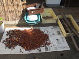 2015/10/29(木)晴れ 今日は、ゆずフェスティバルの準備の一こまからです。先日木の実コーナーのブースで使用するどんぐりについてご紹介しましたがその続報です。集めたどんぐりは中にいる虫を追い出すため、しばらく水につけた後、きれいに洗い天日干しをしています。現在、たくさんのどんぐりを干している真っ最中です。ゆずフェスティバルにお越しの際にはぜひ木の実コーナーにも足を運んでみてくださいね。(かんこう)