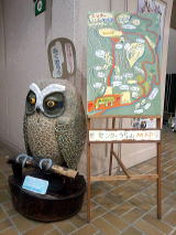 当センターの玄関をくぐると、「ふくたろう」が利用者の皆様をお待ちしています。初めて見たときは、大きくてディティールもリアルなのでちょっと怖いと思いましたが、慣れてきてよく見たら、かわいいものです。手作りの裏山案内板と一緒に、皆様をお待ちしています。当センターにお越しの際は、ぜひ「ふくたろう」を見に来て下さいね!(麗奈)