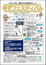 幸せが訪れる?! 2016/10/31(月)曇のち雨 連日『ゆずフェスティバル』に関する情報をお伝えしていますが、今日もお付き合いください。先日、センター職員がツバキの実の皮をたくさん拾ってきました。大きいものや小さいもの、様々な形があります。さて、普通よく目にするツバキの実の皮は3つに割れていますが、一つだけ4つに割れているものを発見!”四つ葉のクローバー”ならぬ”四つ割れのツバキ?(笑) 『ゆずフェスティバル』で、このツバキの実の皮を見つけた方には幸せが訪れるかも?! …訪れてほしい(>▽<) (輝)どんぐりコロコロ♪ 2016/10/29(土) 曇りのち晴れ 「どんぐりころころ♪どんぶりこ〜♪」童謡を思い浮かべます。歌詞の中では“ドジョウが出てきて 今日は”ですが、実際は「ゾウムシ」が出てきて、ドッキリする事が多いかと思います。センターで来月開催される「ゆずフェスティバル」では「木の実工作」コーナーと「ミニリース作り」コーナーでたくさんのどんぐりを用意しますので、目下職員でどんぐりを集めることに必死です。そしてゾウムシ駆除のため、水に浸けて、外に干して・・・と下準備を進めています。今日は「和き・合い・愛ファミリーキャンプ 第3回目」の1日目。お天気にも恵まれ、無事に「買い物GO」(買い物ポイントラリー)が終わり、これから野外炊飯でカレーライス作りです。2日目は、あおぞら農園でサツマイモの収穫。どんな風に育っているか、楽しみです♪(kiko)感謝式ありがとう 2016/10/28(金) 雨のち曇り 今日は朝から雨の降るあいにくのお天気でした。おとといから宿泊研修に来ていた小学校さんが退所する前に、センター職員への感謝式を行ってくれました。歌を歌ってくれたり、手作りのプレゼントも頂きました。その気持ちがとてもうれしかったです。ぜひまた、センターに遊びに来て下さいね!(yama)ワクワク♪ 2016/10/27(木)晴れ 11月に今年も「ゆずフェスティバル」を開催します。今年は復興支援のために、熊本の物産展コーナーも設けられます。さっそく物産展コーナーの案内板ができあがりましたよ〜(*^ー^*)どんな物産が並ぶのか楽しみですね。皆で盛り上げていきましょう!ぜひお越しください!!(Beetle)16ミリ映写機の新しいミカタ☆ 2016/10/26(水)曇のち時々雨 福岡県視聴覚ライブラリーには16ミリフィルムと16ミリ映写機という映像を再生・上映できる機械を保有しており、一般県民の方、公的機関を対象に貸出しています。16ミリフィルム貸出の返却の際、担当職員がフィルムの状態を確認するために点検を行います。通常は点検器で高速再生をするのですが、音声も確認したいため映写機で通常の再生を行っていました。その時、指導員のポロシャツにもピントを合わせたら、フィルムの画面が洋服の上に☆敢えて白いスクリーンではなく、見せる場所を変えたら、また違った見方が出来るかもしれません(^^)/☆(kiko)みんなで環境整備 2016/10/25(火)曇のち時々雨 今日はあじさい広場の側溝に溜まっている土をスコップですくって土のうを作りました。作業をしていると突然の雨が!一旦は中断しましたが、雨も上がり作業再開。側溝もキレイになったし、土のうを積み重ねて水害対策もできました。一石二鳥ですね!雨も降られましたがおつかれさまでした!(ぱおとん)秋 2016/10/22(土)雨 センター付近では、今日も朝から雨が降り続いていて、肌寒いです。センターのロビーから見える紅葉も、少しずつ赤い頬紅を付けお化粧を始めたようです。(写真では少しわかりにくいですが…。) さて、ロビーには、たくさんの絵本が置いてあります。紅葉のそばで読書をしながら、秋を感じる時間を持つのもいいかもしれませんね♪(輝)今日は冷たい雨が・・・ 2016/10/21(金)曇のち雨 今日は朝から涼しく、昼過ぎには冷たい雨が降り始めました。秋らしい感じの涼しさに少しずつ変化してきているようです。写真に写る場所は、当センターのある一画を写しておりますが、ここには夏場になると夕方から夜中にかけて、蝉の幼虫が地面から這い上がり、大量に羽化をするポイントです。最近は、すっかり虫たちも影をひそめて、姿を見ることが少なくなってきました。さて、今年はラニーニャの年といわれております。冬はひょっとすると大雪が降るかも知れないとまで言われております。これから少しずつ進んでいく季節の移り変わりに注目です。(ninjya)新しい教材 2016/10/20(木)晴れ 本日は、視聴覚教育協会の第1回教材選定・利用促進委員会が開かれています。皆様にご利用いただく予定の教材について、どのようなものが望まれているのか、内容が適切なものなのかなどについて一つ一つチェックし協議していきます。皆さんにとって利用価値の高い教材を選んでいるわけです。新しい教材が届きましたら、是非ご利用ください。(yama)竹笛の準備☆ 2016/10/19(水)曇り 先日から来月行われる「ゆずフェスティバル」の準備状況をお伝えしていますが、今日は森林整備ボランティアの吉永先生の竹細