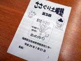 | ウォークラリー 2017/01/30(月)曇りのち晴れ 当センターの活動プログラムに「ウォークラリー」があります。2月に、ある団体の活動で「ウォークラリー」のコースを少し変更して実施しようと思い、センター職員と篠栗駅周辺に行ってきました。大通りから一つ路地を入ると、なつかしい感じのする通りが多く楽しくまわってきました。当センターをご利用いただいた時は、篠栗町をまわるプログラムを是非ご検討ください。(がんじろう)あたたかい夕食 2017/01/28(土)晴れ 夕方になり、気温が下がってきました。当センターのレストランでは利用団体の皆さんが、夕食を召し上がっています。ある研修会の講師が、「人は一緒に食事をすることで、距離が近づき仲良くなれる。」というお話をしていました。日頃は一緒に活動をすることがないお友だちが、食事を通してつながる場所として、当センターのレストランの大切さを感じました。家庭では食事の時間を大切にしようと再確認した瞬間でした。(麗奈)虹 2017/01/27(金)晴 れ今日は寒さが少しゆるみました。朝、外を見るとほんのわずかな時間だけ虹がかかり、心がほっとなごみました。さて、センターでは、明日、6回シリーズの最終回「篠栗土曜塾」があります。すでに準備も万端整いました。明日ご参加のみなさま、可憐な花を咲かせてくださいね。今後も当センター情報をこのホームページで発信していきますので、ぜひご確認ください。(yamakaze) 可憐な花ですねぇ・・・ 2017/01/26(木)晴れ 今週の土曜日の篠栗土曜塾で作る作品です。どうやって作るのでしょう?材料は?ワイン好きの私も材料の一つであるワインのコルクを持ってきたんですよ。(^−^)たまには役に立ちますね。あなたも、土曜塾に参加してきれいで可憐な花を自分の手で咲かせてみませんか?きっとデスク周りが癒しの空間になること間違いなしです。えっ?!私自身が可憐な花って???(シンバの相棒)消防訓練 2017/01/25(水)晴れ 昨日午後に消防訓練を実施しました。今回は、警報器の受信盤が変わるため、メーカーの方に来ていただき操作方法の説明と、職員が実際に操作を体験しました。説明では分かったつもりでいましたが、いざ自分で操作してみるとひとつひとつ確認しながらの操作になりました。利用される皆様が安心して活動できるよう訓練を繰り返し行っていきたいと思います。(そうちん)たくさんのネットワーク! 2017/01/24(火)晴れ 22日(日)に「みんなで育もう!ふくおかの子ども育成支援フォーラム」を開催いたしました。斎藤先生の講演では、事例を交えてのお話に、参加者の皆さんうなづきながら聞き入っていました。午後のテーマカフェでは、工夫された実践発表があり、その後の質疑応答では活発な意見交換が行われていました。発表の合間の交流タイムでは、コーヒー片手に名刺交換をされたり、掲示物を見られたり、お話がはずんだりと、たくさんのネットワークが築かれていました。ご参加いただいた皆さま、ありがとうございました。(茶々丸)ささぐり土曜塾 2017/01/21(土)晴れ 今日は第5回目となる「ささぐり土曜塾」を開催しました。今回は「グルグルあめ」と「コマ」を作りました。スプーン山盛り1杯の砂糖とちょっとの水をお玉に入れて火にかけると、グツグツと沸騰してトロトロになっていきます。カップに入れて固まったら完成です。簡単においしいあめができあがりました。ペットボトルのキャップとダンボールでコマ作りもしましたが、にぎやかなデザインのコマがたくさんできていました。最終回となる来週は「マニキュアフラワー」を作る予定です。参加者のみなさん、どうぞお楽しみに!(米米)いつも思うこと… 2017/01/20(金)曇り時々雨か雪 きょうは、二十四節気の「大寒」です。これから来月4日の立春のころまで、一年で最も寒さが厳しい時期と言われています。本日センター付近は冬の嵐。立っているのも大変なほどの強風及び吹雪。この悪天候の中研修会に参加されました皆さま、本当にお疲れ様でした。いつも「研修会が終わるころには、天候が落ち着けばいいな」と思っています。が本日はなかなか回復しませんでした。十分にお気をつけてお帰りください。またのお越しをお待ちしております。(りん) お楽しみに☆ 2017/01/19(木)晴れ 昨日に引き続き、今週土曜日開催の「ささぐり土曜塾」の案内です。今週のささぐり土曜塾では、あめ作りとコマ作りをします!作ったコマで遊べるように担当指導員が土台を手作りしました^^その名も『WAKASUGI スタジアム』です☆風神・雷神もお目見えのかっこいい土台が出来上がりました!土曜日は、美味しいあめを食べながらコマ回しで楽しんでいただきたいですね^^(CoCo)今週末の空模様は… 2017/01/18(水)晴れ 今週は1/21(土)に「第5回ささぐり土曜塾」、1/22(日)に「みんなで育もう!ふくおか子ども育成支援フォーラム」が行われますが、気になる空模様はというと、寒気の影響で気温がぐんと下がるようです。当センターのお部屋は暖