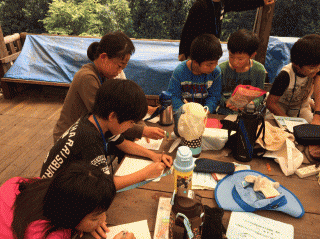 レッツ!サーチ!もいよいよ、第3日目を迎えました。本日の活動場所は豊前「森の学校」です。ここでは、里山を守るための環境保全について学習しました。他にも、燻製体験、ウッドチップ作り等を体験しました。真剣な表情で奮闘する様子がよ~く伝わってきます。 暑さに負けず、みんな頑張ってね~っ!(まつしょう)