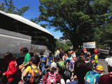 今日は豊前から八女までバスで移動しました。八女での活動場所は「ほたると石橋の館」。きれいな川で生き物探し。石の下に何か見つけられたかな?