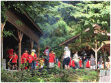 今日からいよいよ5泊6日の「レッツ!サーチ!地球環境応援隊」がスタートしました。元気よく開会式を迎えた後は、何やら頭を寄せています。次はジャイアントシーソー。グループで協力して課題をクリアしています。野外炊飯ではジャガイモやタマネギを切りました。ナタで薪を割ったのは初めての体験かも?これからも多くの自然体験や仲間と力を合わせた活動が盛りだくさんです!