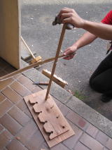 社会教育総合センターの火起こし器は、現在マイギリ式という、木の重りがついた棒を回転させて摩擦熱で火種をつくる方法を用いていますが、今回ユミギリ式の火起こし器を制作しています。テストでは煙が出るところまで成功しました。誰もが簡単に火起こしできるようになるにはまだまだ改良が必要なようです。センターに研修に来られた際は、自分達で起こした火で野外炊飯などされてはいかがでしょうか。(つりきち))