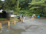 台風18号接近に伴い、たった今、職員で『雨水防止柵』を設置しました。これは、山から雨水が施設に流れ込んでくるのを防ぐための防止柵です。また、野炊場の一部のテントも台風に備えてたたみました。今回の台風18号は、1993年に大きな被害をもたらした台風13号と同じく、大型で強く勢力を維持したまま進んでいるそうです。九州北部豪雨で被害を受けた朝倉や東峰村地区に、また大きな被害が起こらなければいいですが・・・17日に九州に上陸するおそれがあるそうなので、台風への備え、また台風が近づいている時には不要不急の外出は控えるようにしましょう!当センターを利用されている団体の方々も、十分に気を付けてお過ごしください。(Beetle)