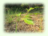 今年の夏主催事業レッツサーチ地球環境応援隊に参加した小中学生のみなさんが植樹したドングリですが、きびしい夏の暑さを耐えて、あざやかな緑色の葉を元気いっぱいに広げて順調に成長しています。そろそろ添え木をしてまだまだ細い幹を守ってあげないといけません。植樹をされた小中学生のみなさん成長を見守ってくださいね!(つりきち)