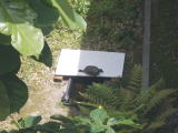 こんないいお天気の日は、カメ吉親子は、足を伸ばして、気持ちよさそうに甲羅干し。この写真は、2階の廊下から中庭をのぞいた風景です。みなさんもお天気がいい日に中庭をのぞいてみてくださいね!(そよかぜ)