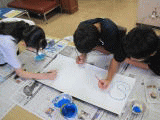 ☆今日は、野外活動のSTART(スタート)の標識を作りました。縁からはみ出さずに塗るのが難しかったです。