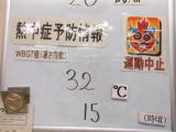 今日も朝からかなり気温が高くなっております。最近は熱中症にかかってしまうニュースを多く耳にします・・・。センター職員も十分に熱中症の予防に心がけているところです。左の写真は、第一事務室の熱中症予防情報を毎朝記載して職員に周知をしています。皆様もどうか熱中症にはお気をつけてお過ごしください。(ぽっきー)