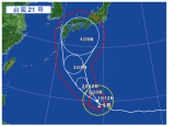 またまた台風が接近中です!中心気圧が915hPa、最大風速が中心付近で55m/sと猛烈な強さの台風のようです。台風周辺地域および進路にあたる地域は暴風や大雨に厳重な警戒が必要です。今のところ、予想進路では九州直撃ではなさそうですが、今後の台風の動きに注意を払って、安全な行動を取るように心がけましょう。(ぱおとん)