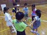センター主催事業の「はじめてチャレンジ!ドキドキキャンプ」開催中です!なんと、年長児が保護者の元を離れて、お泊りや体験活動を行っています。お泊り保育をしたことがあるから大丈夫・・・ではないんです。ほとんどが、初めて会った子どもたちやボランティアの方々です。そんな中で、自分のことは自分でできたり、集団行動の決まりを身につけたり、人や自分を大切にしたりする心や態度を身につけたりしていきます!まずは、「室内きずなの森プログラム」にチャレンジです。同じ班の人と協力しないと成功しないこの活動。みんな楽しんでいるようでした。明日、帰る頃には、みんなの顔つきが変わっていることを楽しみにしています!(茶々丸)