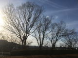 篠栗の朝7:00の空。この写真、太陽ではありません。お月さまです。昨夜は「スーパームーン」でした。昨夜、帰宅途中に、大きな月が出てくるのを見ましたが、朝も見られるなんて!朝方はちょっぴり雲が多かったのですが、雲から出たり、雲にかくれたり。この30分後には、反対側から太陽が!なんか得した朝でした!(茶々丸)
