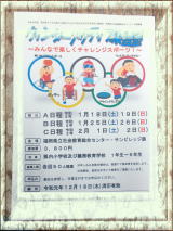 昨日も書きましたが、本当に朝夕がめっきり寒くなりましたね。冬と言えば当センターのイベントと言えば、「ささぐり土曜塾」と「ミニ門松づくり」がありますが、年明けから「ウィンターアクティブ楽習塾」が開催されます。今年は2020年に行われる東京オリンピック・パラリンピックを感じてもらうため、パラリンピック種目を是非体験してもらおうと思っています。詳しい内容はこれから話を詰めていくので、楽しみにしていて下さい。もうすぐ皆様の元へチラシを公開します。今回はその一部をお見せします。(統輝パパ)