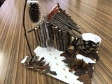 さっそくですが、これは何でしょう?正解は「木の実工作の作品」です。これは、今月9日10日に開催される「ゆずフェスティバル」の木の実工作の作品例になります。職員が、センター敷地内にある木の実や木の皮、小枝等を使って、楽しく試行錯誤しながら作ったものです。とてもよくできていて、つい写真をとったので紹介します。皆様、このような作品をつくってみませんか。このような作品を作ることができる「ゆずフェスティバル」に、是非お越しください。おまちしています。(黒桔)