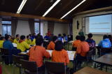 福岡県青少年教育施設連絡協議会研修会の2日目は、当センターの「きずなの森」を室内プログラムで体験した後、「深坂自然の家」所長 井上桂先生を講師としてお招きして「自然体験のリスクマネジメント」について研修を行いました。後半の「シナリオトレーニング」では様々な状況下にある要救助者を裏山から救出するという内容で、竹を使った即席の担架で搬送するなど、(要救助者役のリアルな演技もあって?)皆さん真剣に取り組んでおられました。この2日間で学んだことをそれぞれの施設でいかしていただけたらと思っています。参加いただいた皆様お疲れ様でした!(とんちゃん)