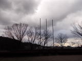 寒波襲来がニュース等で報じられておりますが、当センターも寒波に見舞われています。それで、「今日は雪景色がお届けできるかも」と思っていたら、雪は午前中に降ったものの積もるほどではありませんでした。旗を揚げたままにしていては、強風にあおられて破れてしまうかもしれないので降ろしました。旗のポールや木々の枝はグラグラ揺れていますが、如何せん地味な光景しかお届けできないのが申し訳ないところです。(HCl)