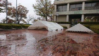 今日の篠栗は雨です。玄関前に置いてあるテントも雨に濡れています。何のために置いてあるのかといいますと、今月8日(日)に開催する「ファミリーカミングデイ!」で使うためです。玄関前の広場ではバザーや木工体験のブースが設置されます。今年度は新型コロナウイルス感染症対策のために、例年の「ゆずフェスティバル」よりも小さい規模での開催ではありますが、お越しの皆様が楽しんでいただけるよう準備をしております。※「ファミリーカミングデイ!」の参加申込みの受付けは終了しております。(HCl)