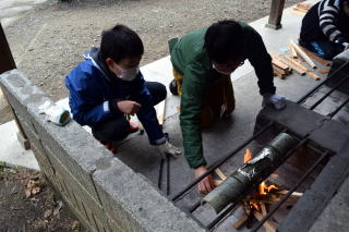 今週開催される主催事業「ささぐり探検隊」の事前活動で炊き込みご飯作りを行いました。初めは、竹ごと燃えてしまい上手く炊き上がるのか心配でした。しかし、炊き上がったご飯は、竹のかおりがするとても美味しい炊き込みご飯が出来上がりました。参加者の方には、オリジナルの炊き込みご飯を考えていただくようにしています。2月7日は、どんな炊き込みご飯ができるか今から大変楽しみです!!(輝)
