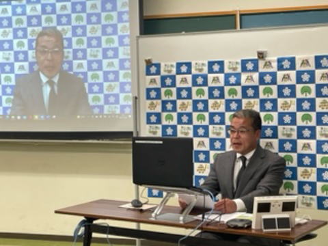 - 前回、バックボードの記事をお知らせしましたが、今回は実際に使用した研修会の様子をお知らせします。先月の「地域と学校の連携・協働推進フォーラム」で当センターはオンライン研修デビューしました。まだまだ不慣れな中、たくさんの方々の協力のおかげで、139名の方に参加していただき、担当として大変感謝しています。事例発表の校長先生は、実際に当センターへ来てくださり、オンラインでご発表されました。バックボードのふくたろうも喜んでいます。校長先生、なかなか映えています!!研修会の様子は、後日「地域と学校の連携・協働推進プロジェクト特設ページ」にて、おしらせしていきます。(ぺこら)