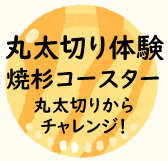 | 実際にのこぎり体験をして、自分で切った杉でコースターをつくります! |